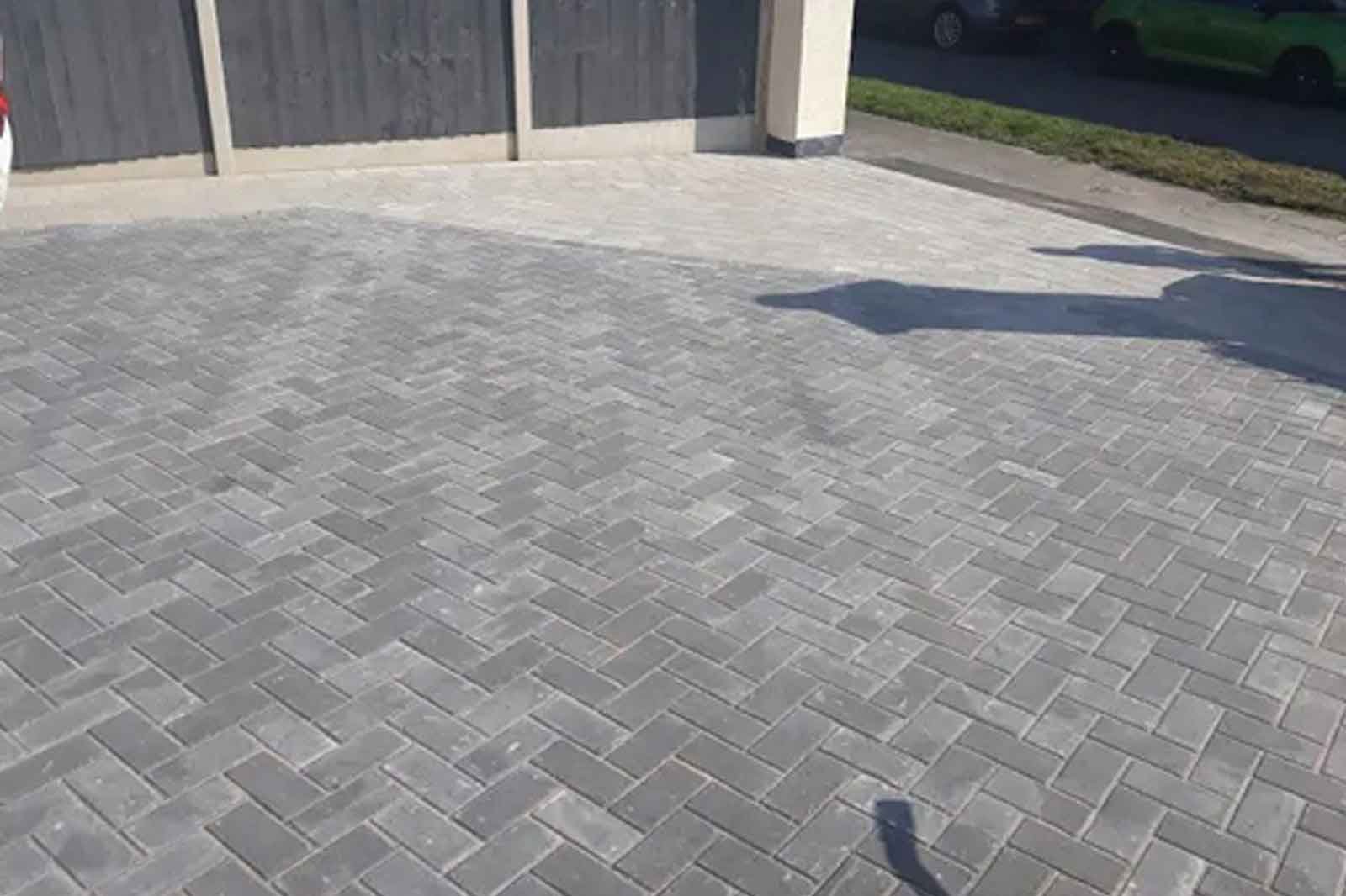 Finally, the interlocking pavers are carefully arranged according to the chosen pattern. After placement, joint sand is swept into the gaps, and the entire surface is compacted for a secure fit and smooth, professional finish.